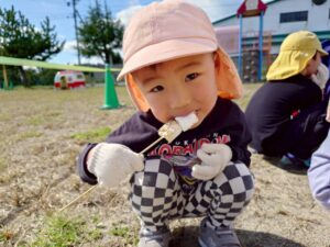 小さいクラスのお友達もさつまいもが入った焚火をじっと眺めたり、午後のおやつで焼き芋を食べたりして、秋を感じるひとときを過ごしましたよ。