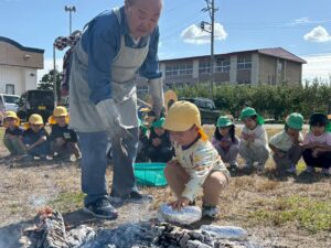 去年に引き続き、ふたば保育園の奈良岡先生にご協力いただき、焼き芋を楽しみましたよ。
