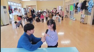 最後に子どもたちが作ったメダルを留学生さんにプレゼントし、記念写真を撮って「また遊ぼうねー!」とハイタッチしてお見送りしました。