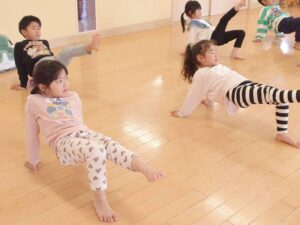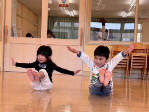 自分で上手くバランスを取りながらジャンプしたり、手の位置や足の開き方に気をつけながら取り組む姿が見られました。